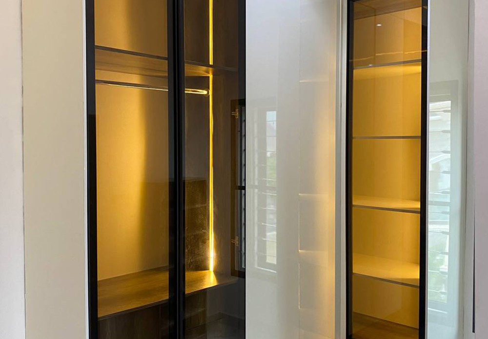 wardrobes with glass finishes, and storage that doubles as a design feature.